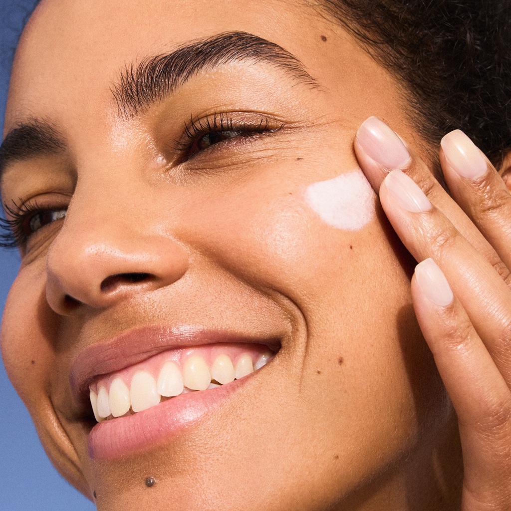 Dup dit ansigt tørt (gnid ikke, da det kan irritere huden), og lad huden være let fugtig, men ikke våd.