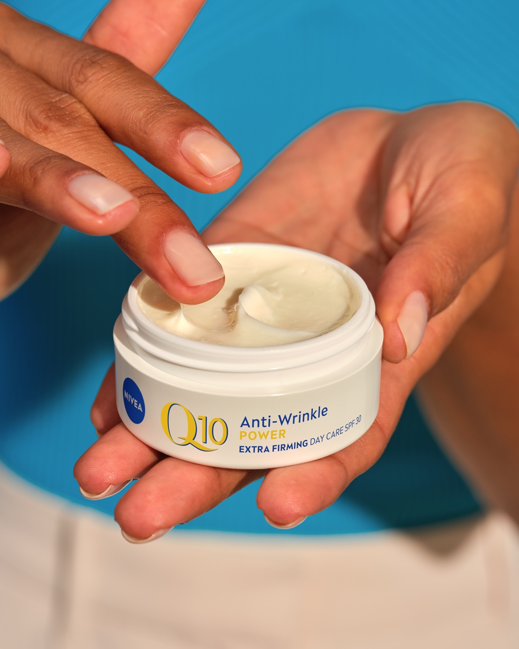 Hvis du er i tvivl om, hvilken dagcreme du skal vælge, kan du udforske NIVEA Q10 Anti-Wrinkle 60+ Replenishing Day Cream med SPF15, som er lavet med ren Q10 og økologisk arganolie og giver op til 24 timers intensiv fugt og pleje. Ud over at holde huden fugtet kan denne særligt udviklede creme hjælpe med at gøre huden fastere og reducere samt forebygge rynker – for en strålende og yngre udseende hud. Formlen indeholder også SPF 15, som beskytter huden mod UV-stråler, der kan føre til tidlig hudaldring. Allerede efter 4 uger kan huden føles mere fyldig, og dybe rynker kan være synligt reduceret – takket være kombinationen af arganolie og Q10.