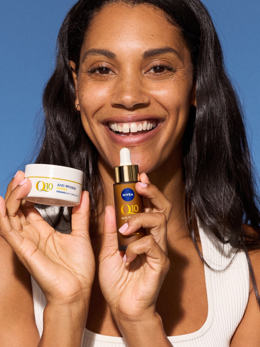 NIVEA Q10-serien udnytter den fulde kraft af den antioxidative og energigivende coenzym Q10 til at hjælpe med at genoplive huden og synligt dæmpe aldringsprocessen. Beriget med hudvenlige ingredienser arbejder serien for at reducere smilerynker og rynker, genoprette fasthed og give dyb hydrering, så huden får en ungdommeligt strålende glød.