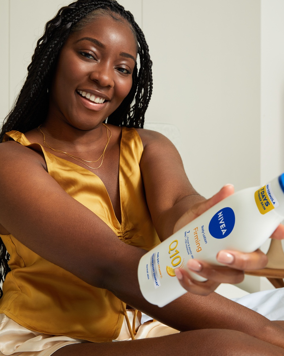 NIVEA Firming + Energising Q10 er det perfekte supplement til din kropsplejerutine. Formuleret med C-vitamin og Hyaluronsyre og vores højeste koncentration af Coenzym Q10 i NIVEA Body-serien, hjælper den med at opstramme og forbedre hudens elasticitet allerede efter 7 dage og giver op til 72 timers hydrering. Den lette tekstur smelter blidt ind i hudens øverste lag, så huden føles energifyldt, smuk og sundt strålende.