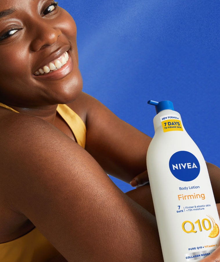 Efter badet kan du vælge en af NIVEAs målrettede Q10-opstrammende kropslotioner for at låse fugten inde og støtte hudens fasthed: