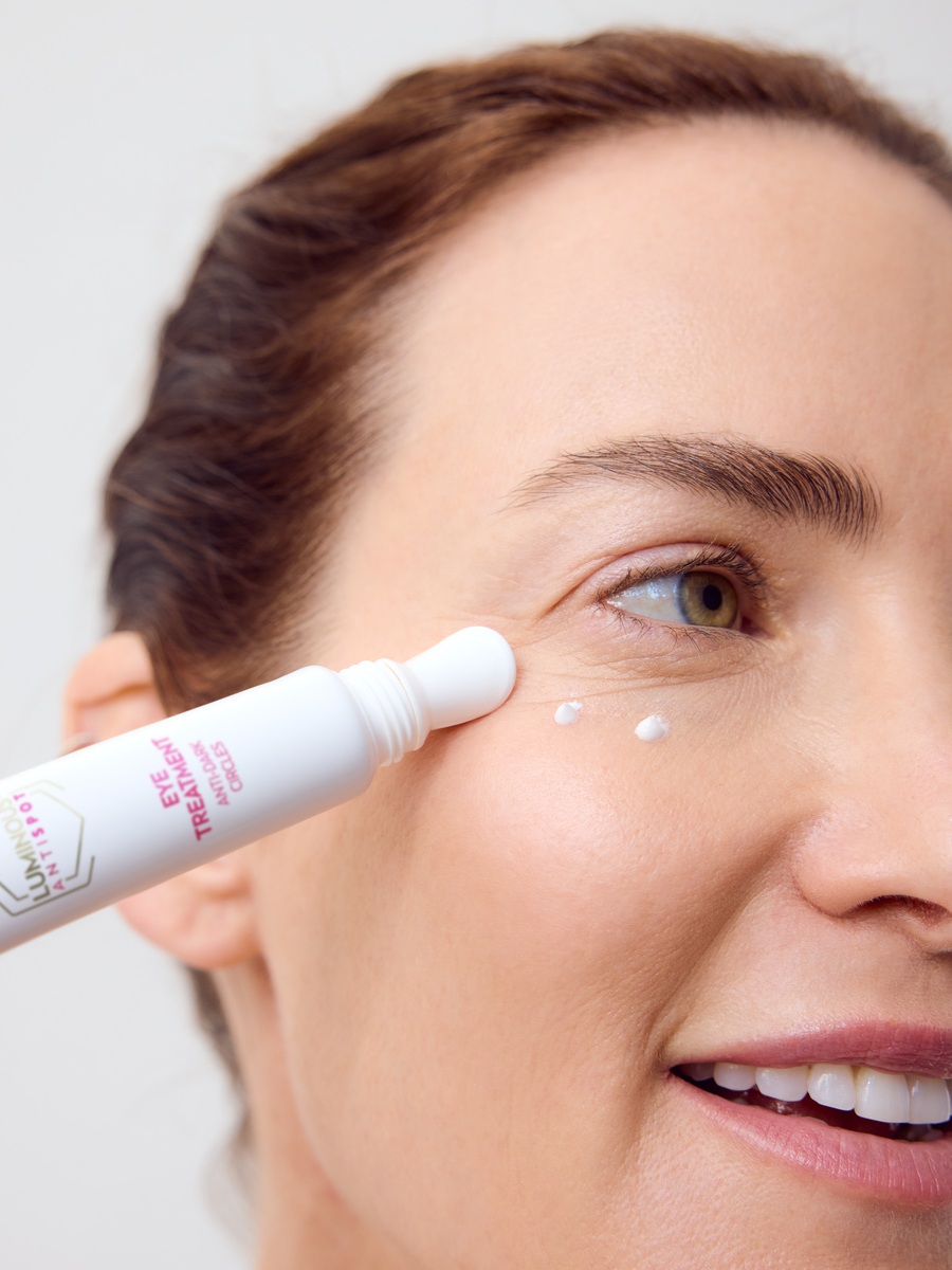 Tips: Vælg en øjencreme, der målretter dine behov; påfør ved forsigtigt at duppe med ringfingeren, og undgå at komme for tæt på øjet; start med lidt og tilføj mere efter behov; vær tålmodig med resultater.