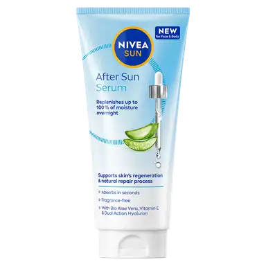 NIVEA SUN After Sun Sensitive Cream-Gel reducerer rødme og beroliger huden efter soleksponering med Aloe Vera og antioxidanter.