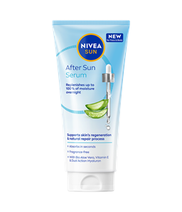 NIVEA SUN After Sun Sensitive Cream-Gel reducerer rødme og beroliger huden efter soleksponering med Aloe Vera og antioxidanter.