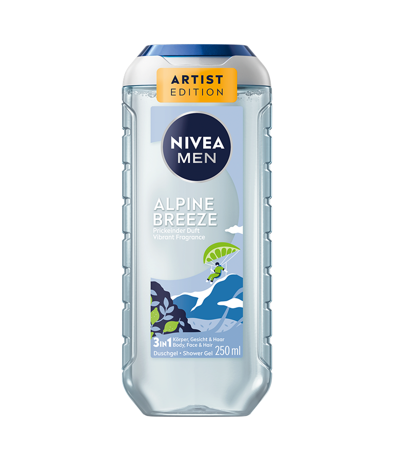 NIVEA MEN Alpine Breeze 3-i-1 Shower Gel - kombinerer en livlig alpin duft med en mild, pH-neutral formel, der giver en forfriskende rengøring af krop, ansigt og hår.