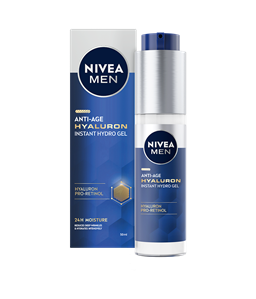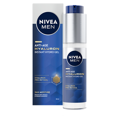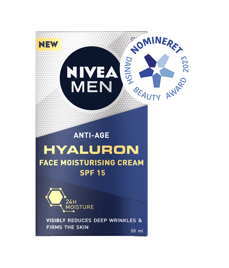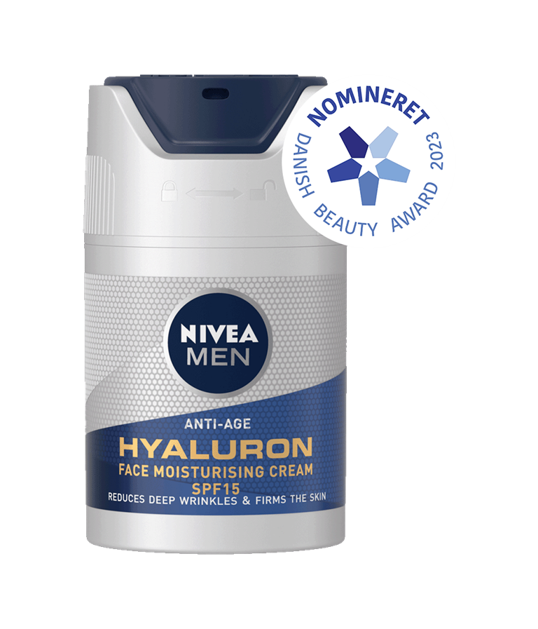 NIVEA MEN Anti Age Hyaluron Face Cream er en ansigtscreme, der synligt reducerer rynker og gør huden fastere. Formlen er beriget med hyaluronsyre og SPF 15 og absorberes hurtigt.