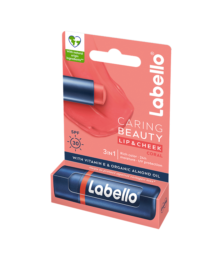 Caring Beauty Coral-Nude - en farvet læbepomade og kindbalsam med en 3-i-1-formel, der giver intens farve, 24 timers fugt og hjælper med at forhindre kollagentab takket være SPF30-solbeskyttelse. Vores nye Caring Beauty-serie har flere farver, som også kan kombineres for at skabe nye, unikke nuancer!