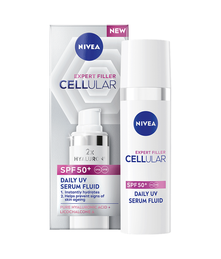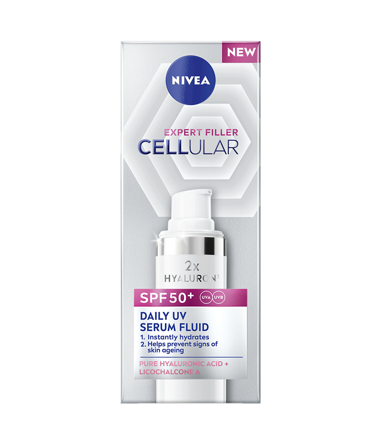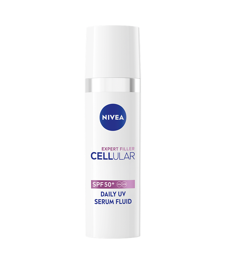 CELLULAR EXPERT FILLER SPF50+ Daily UV Serum Fluid fugter øjeblikkeligt og udbedrer og forebygger tegn på hudens ældning.