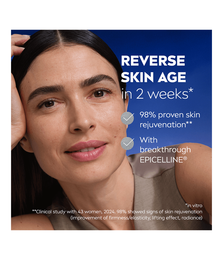 EPICELLINE® reaktiverer hudcellernes ungdomsfunktioner** – vækker sovende hudceller, så de opfører sig ungt igen og vender hudens alder. Oplev fastere hud med synligt færre rynker, bekræftet af 85 % af kvinderne**. Klinisk bevist at give fylde og forynge huden efter én gangs brug og vende de største tegn på hudaldring. 100 % af kvinderne bekræfter et mere ungdommeligt udseende efter 4 uger***.
