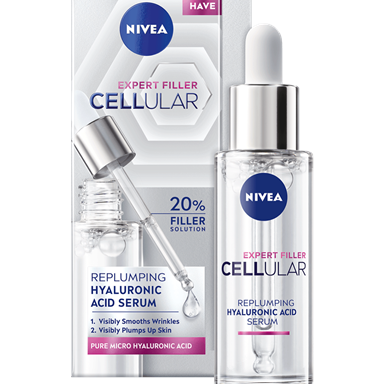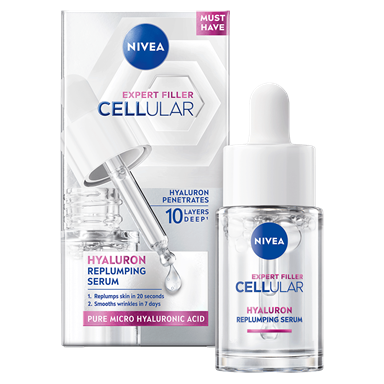 Giv din hudforyngelsesrutine et boost ved at kombinere det nye NIVEA CELLULAR Epigenetics - Rejuvenating Serum med EPICELLINE® med NIVEA CELLULAR Expert Filler Intensive Anti-Age Day Care SPF 30.