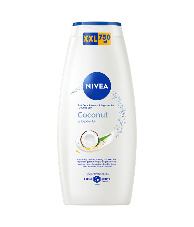 NIVEA Coconut & Jojoba Oil 750 ml: Rig og cremet tekstur for en ren, glat og smuk hud med et sundt udseende. pH-hudneutral formel, der arbejder i balance med hudens eget mikrobiom