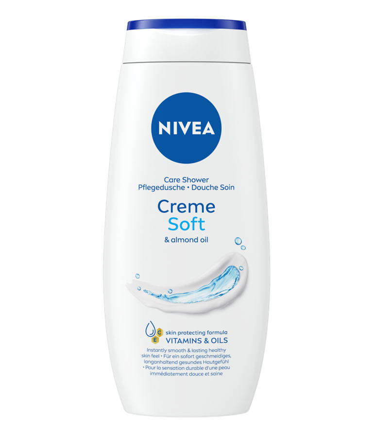 NIVEA Creme Soft Shower er en kropssæbe, der plejer din hud og giver en blød hudfornemmelse. Formlen er beriget med vitamin C, E og mandelolie, der skånsomt renser og plejer huden.