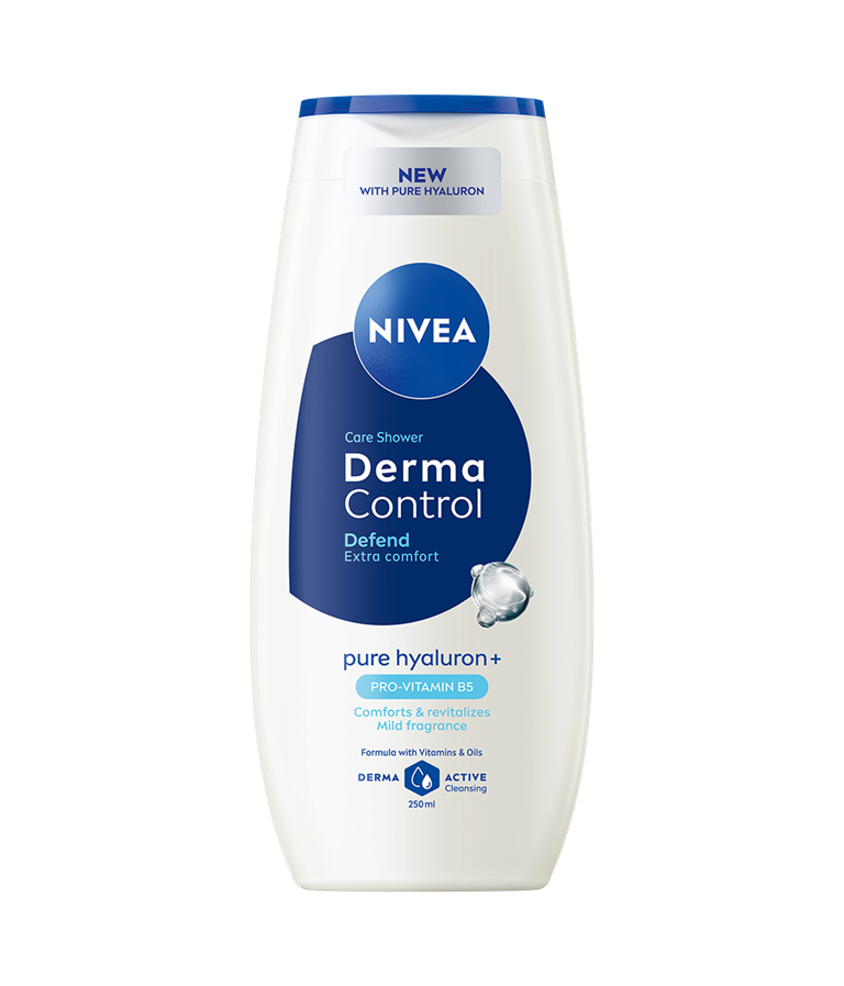 NIVEA Derma Control Defend Shower med ren hyaluron og Pro-Vitamin B5 revitaliserer din hud og giver ekstra komfort. Formlen renser skånsomt huden, mens den understøtter dens modstandskraft mod irritation og udtørring. For en sund hudfornemmelse.