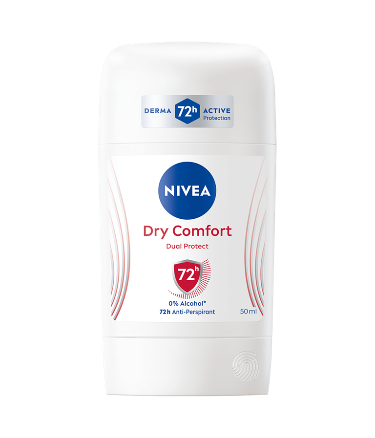 NIVEA Dry Comfort Anti-Perspirant Stick sikrer pålidelig beskyttelse, der plejer din hud, med sin dobbelte beskyttelsesteknologi og 0% alkohol. Pålidelig 72 timers antiperspirantbeskyttelse, der plejer din hud.