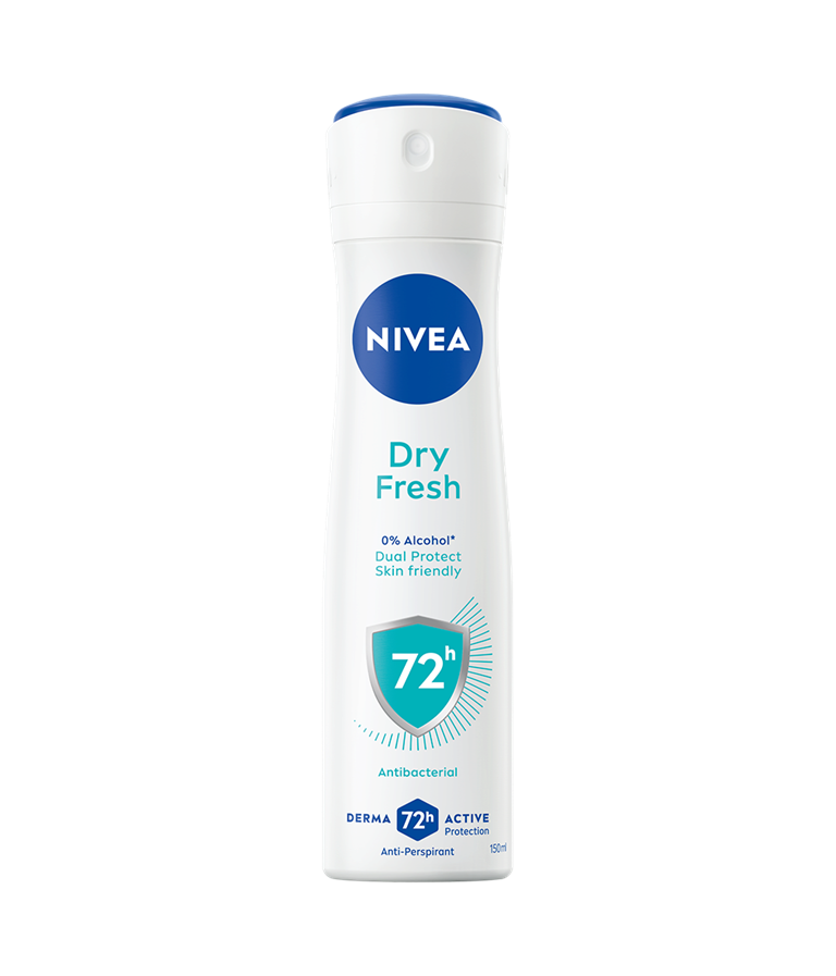 NIVEA Dry Fresh Spray Anti-Perspirant med Dual Protect-formel med to antibakterielle aktive ingredienser sikrer komfort og en tør hudfølelse. Pålidelig 72h antiperspirantbeskyttelse, der plejer huden.