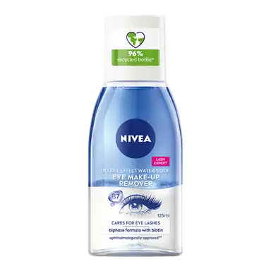 Denne øjenmakeupfjerner er beriget med provitamin B5, som skånsomt fjerner make-up og mascara, samtidig med at øjenvipperne bliver plejet.
