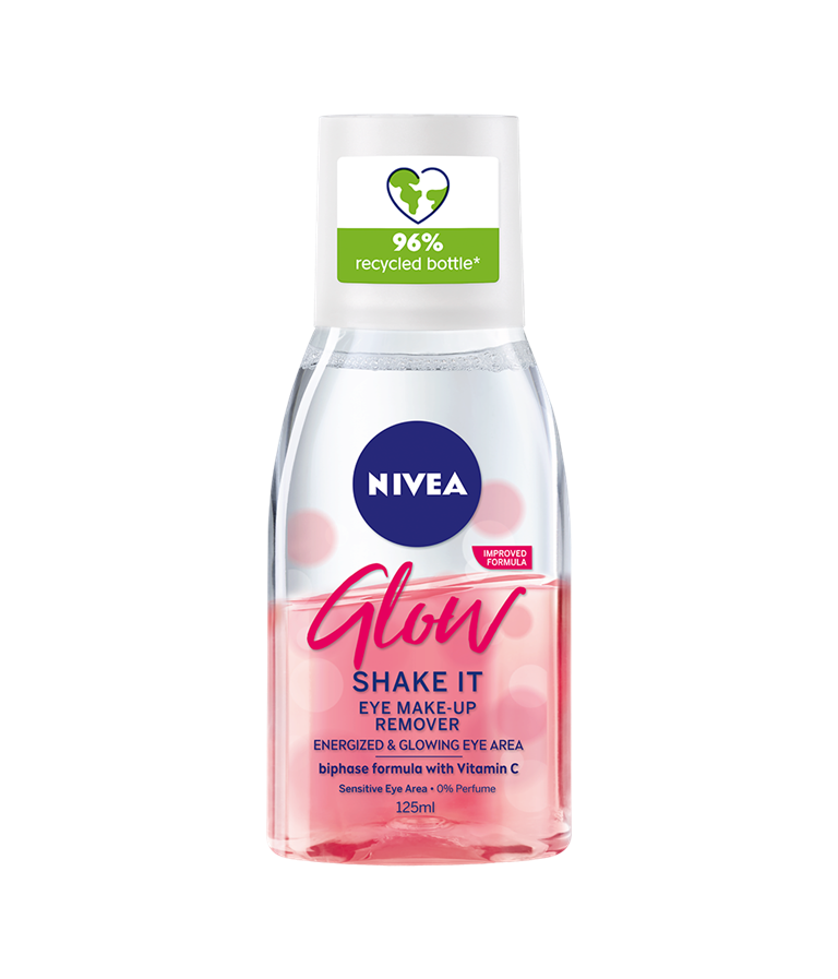 NIVEA Glow Eye Make-up Remover er en makeupfjerner, der fjerner vandfast mascara og makeup. Produktet er skånsomt mod det følsomme øjenområde og er velegnet til kontaktlinsebrugere | 125 ml