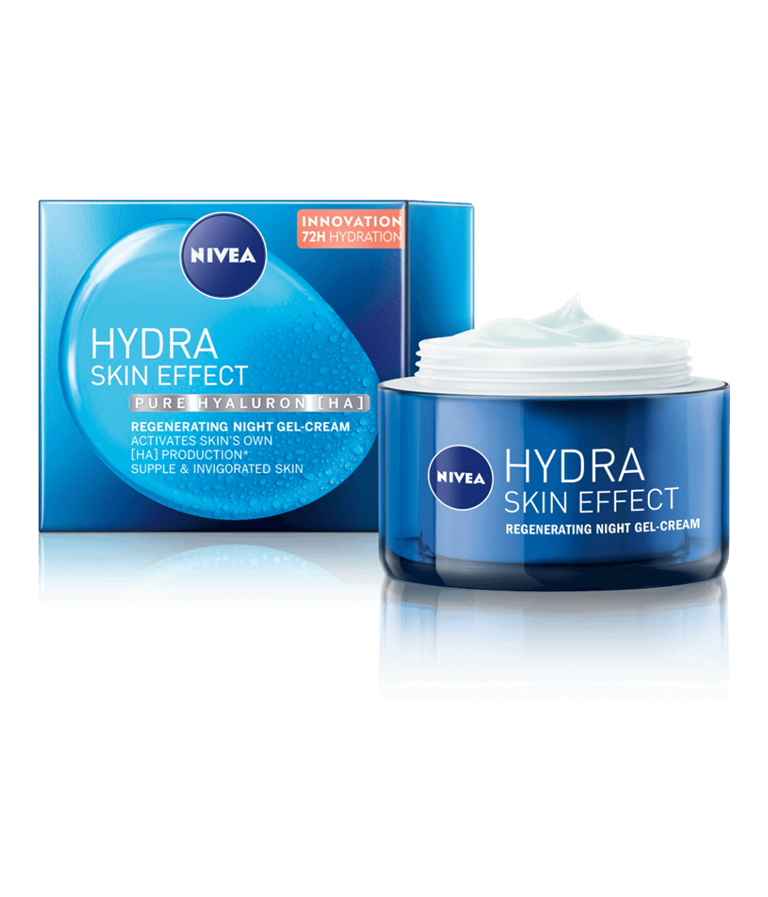 Den nye NIVEA Hydra Skin Effect Regenerating Night Cream indeholder ren hyaluron [HA], som aktiverer hudens egen hyaluronproduktion.