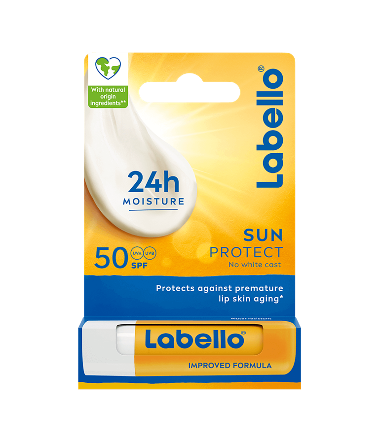 Få 24 timers hydrering og solbeskyttelse med Labello SUN PROTECT. Den fugtgivende formel beskytter mod UVA/UVB-stråler og er vandfast.