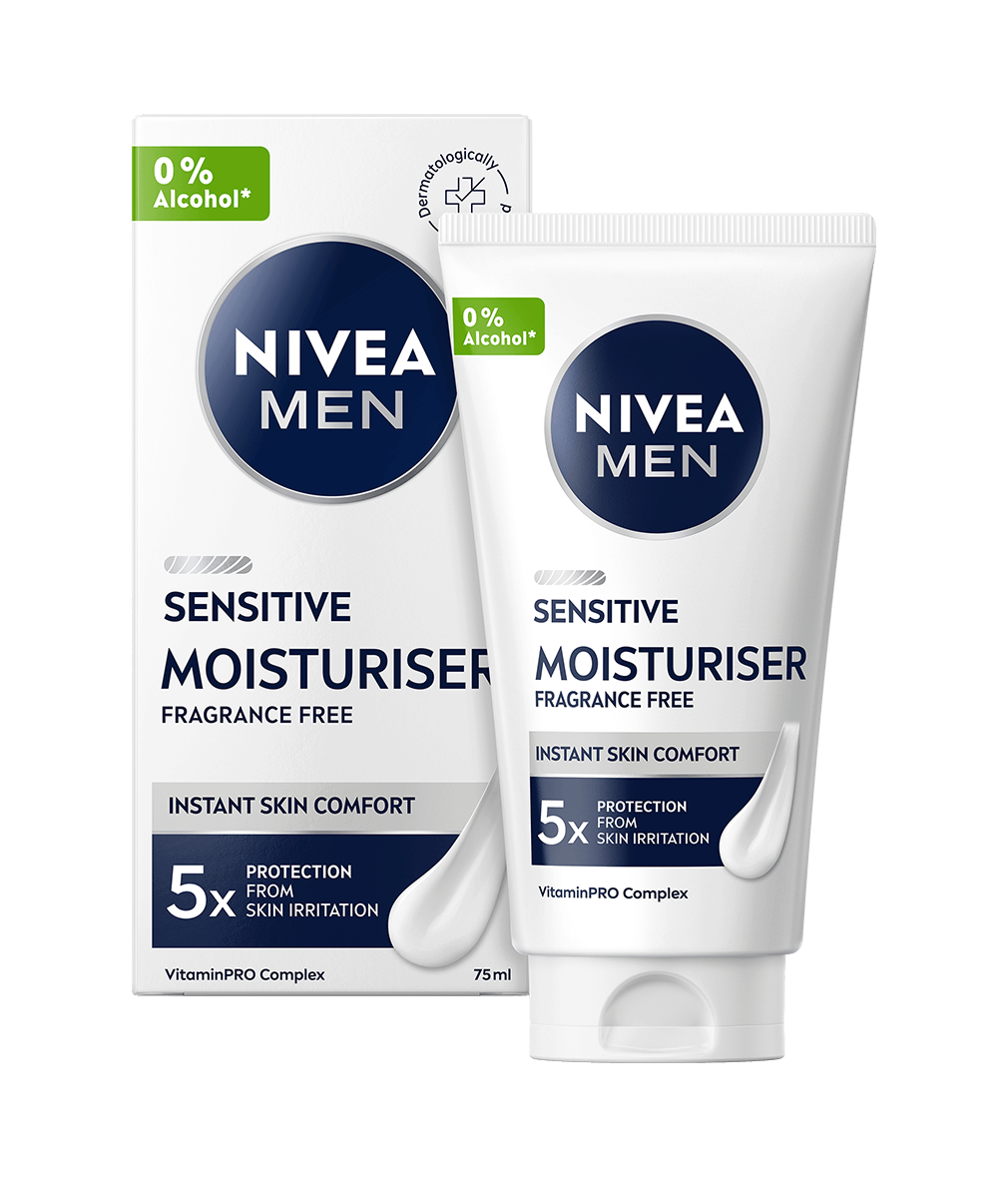 NIVEA MEN Sensitive Moisturiser Face Cream er en 24 timers fugtgivende ansigtscreme, der er specielt udviklet til at give langvarig fugt til følsom hud. Den beroliger og plejer, så huden føles behagelig og frisk hele dagen!
