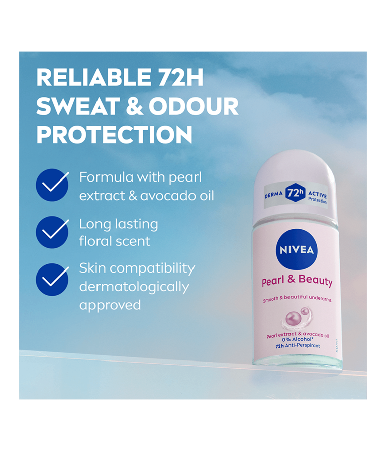 NIVEA PEARL & BEAUTY-serien forskønner din armhule og giver pålidelig 72 timers antiperspirantbeskyttelse, der plejer din hud. Den innovative formel indeholder dyrebare perleekstrakter af naturlig oprindelse for at udjævne hudtonen og er beriget med avocadoolie. For bløde, glatte og smukke armhuler.