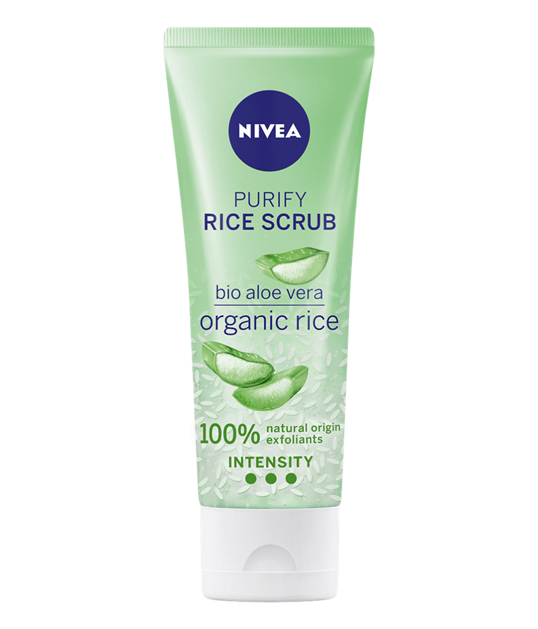 En høj-intensitets scrub til kombineret og fedtet hud. Formulaen med Aloe Vera og økologiske ris støtter hudens egen fornyelsesproces og efterlader huden mat, blød og fin.