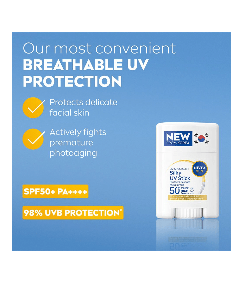 Oplev UV-beskyttelse fra Korea – udviklet til at beskytte de sarte ansigtsområder med vores første UV-stick med SPF 50+. Perfekt til genpåføring på farten – helt uden brug af hænder. Sved- og vandafvisende, og løber ikke ned i øjnene.
